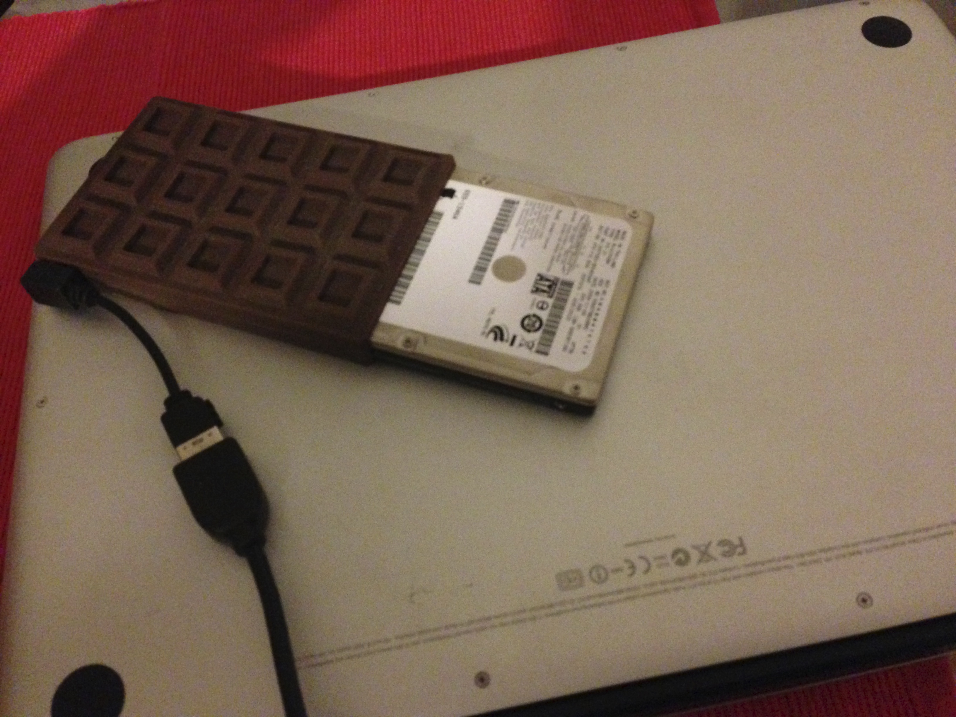 Um die Festplatte aus dem Macbook zukünftig als externes Laufwerk nutzen zu können brauchen wir zusätzlich noch ein externes Gehäuse für Festplatten von 2,5“ Größe. In unserem Falle ist das ein Networx Gehäuse aus Gummi mit einem USB 2.0 Anschluss für unter 10€.