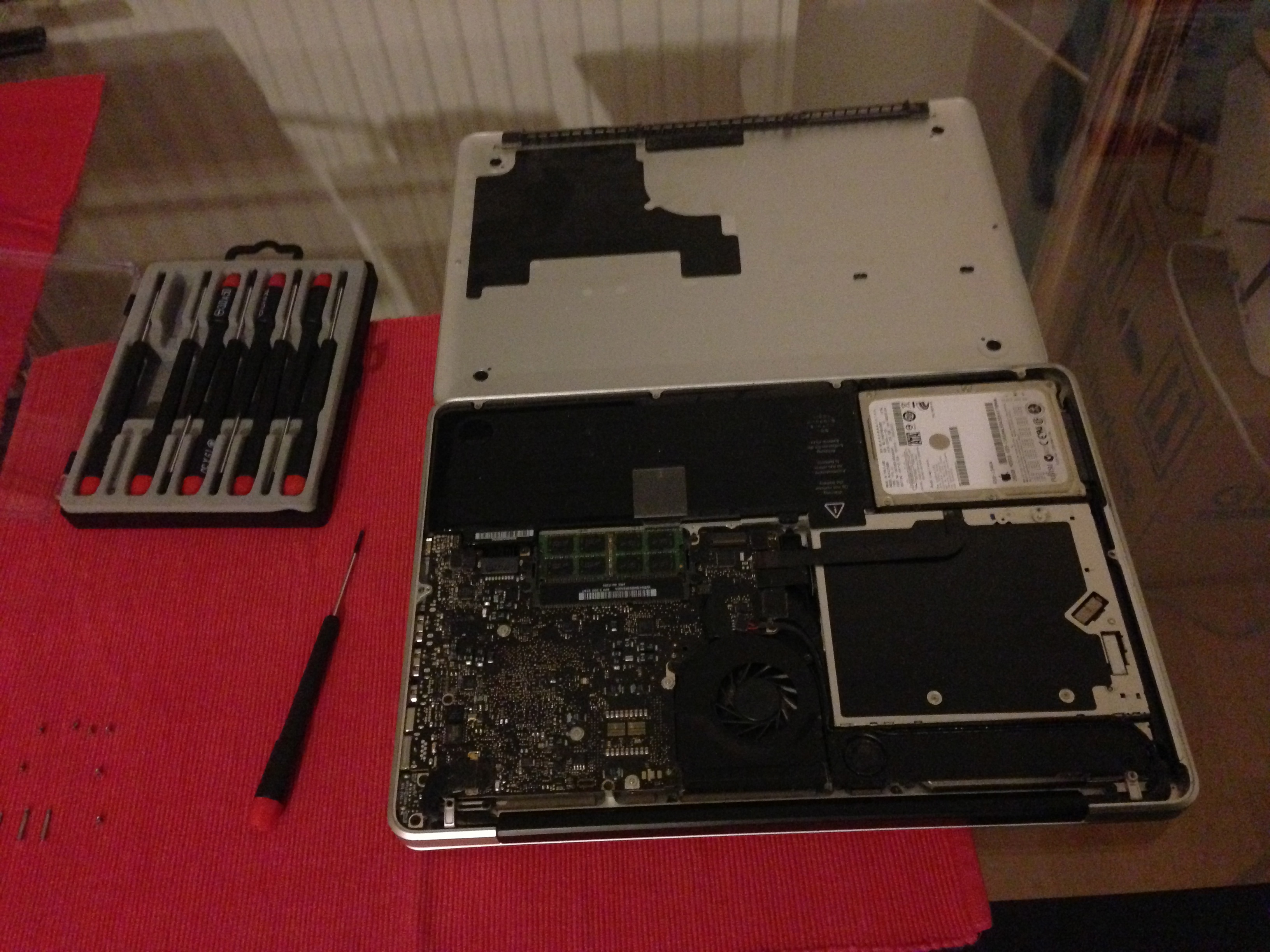 Ich lege die Schrauben immer exakt so neben das Macbook, wie ich sie ausgebaut habe.