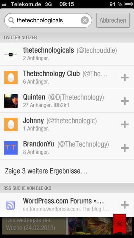 Flipboard ist eine Anwendung, die zunächst Online-Inhalte bündelt und in einer eigenen Maske präsentiert. Das Konzept klingt simpel und ist es eigentlich auch. Wie bei vielen Anwendungen wird verlangt, dass sich der Nutzer ein eigenes Flipboard-Profil erstellt, um somit eine Bündelung überhaupt möglich zu machen und auch nach einem eventuellen Betriebssystem- oder Handywechsel die Einstellungen und verknüpften Profile speichern zu können. Nach diesem Schritt ist es bei Flipboard möglich nach vielen verschiedenen Seiten zu suchen, die den Endnutzer interessieren. Hierbei kann Flipboard auch unterstützend eingreifen und nach Kategorie Vorschläge für bekannte Seiten anzeigen. Wahlweise kann bei bekannter Adresse oder Namen auch nach einzelnen Plattformen gesucht werden. Auf dem Bild unten sieht man beispielsweise, dass auch nach uns gesucht werden kann. Weiterhin können nicht nur Informationsportale hinzugefügt werden, die Flipboard-Entwickler haben auch den Trend der Sozialen Netzwerke aufgegriffen. Eine Verbindung zu Facebook, Twitter oder Youtube kann ebenfalls hergestellt werden.