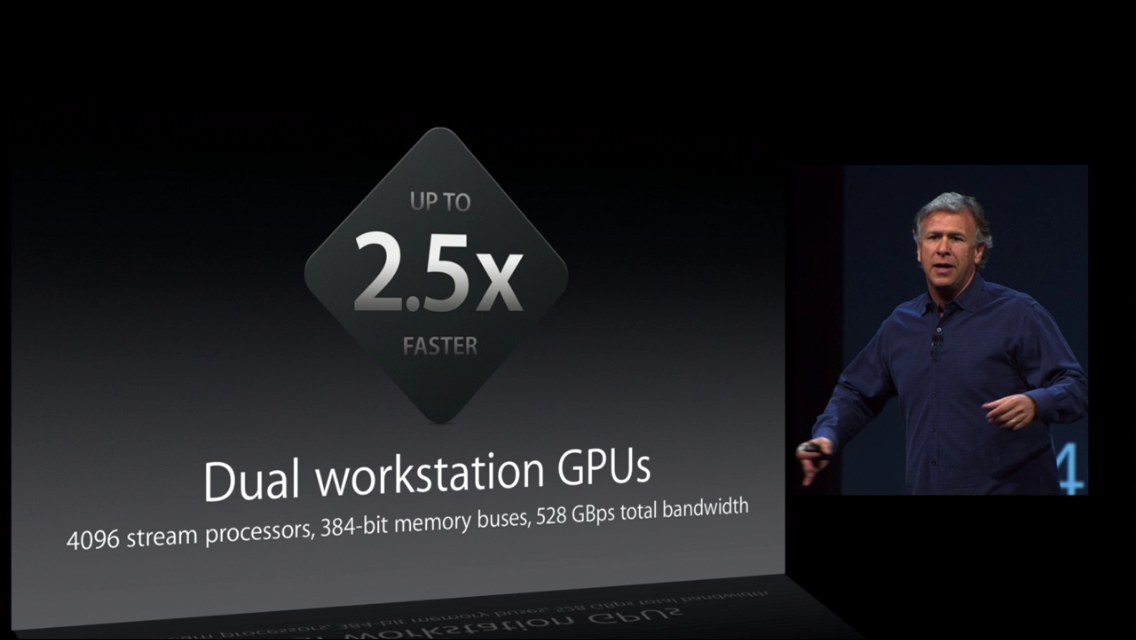 20:01: Wow doppelt so schnell wie der aktuelle Mac Pro mit SSDs, DDr 3 RAM und alles was man erwartet! Der Mac Pro wird mit Thunderbolt 2 ausgeliefert! Er hat 6 Ports!