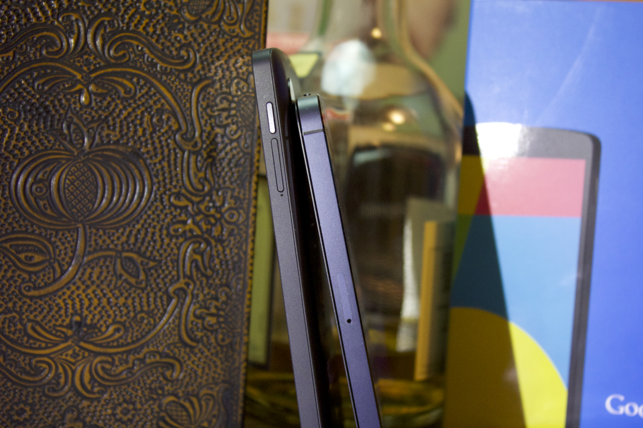 Die Verarbeitung ist im neuen Nexus zudem tadellos. Nichts knarzt und auch die Spaltmaße sind minimal. Schön zu sehen ist, dass Google den Glasrücken des Nexus 4 gegen einen Rücken aus Plastik ausgetauscht hat. Anders als beim G2 oder Samsungs Galaxy S4, wirkt das Plastik allerdings nicht so billig und schleimig, sondern ist so bearbeitet, dass es fast wie ein leichter Gummiüberzug wirkt. Kurzum, das Nexus fühlt sich toll an und liegt griffig in der Hand.