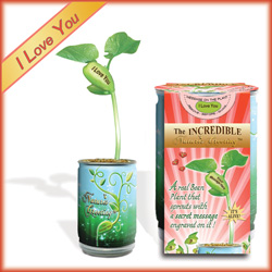 Also doch der Klassiker: Blumen, naja also fast, eine Blume…oder ehr Bohne oder was auch immer…jedenfalls wächst es. Das tun Blumen doch auch. Auf dieser Bohne steht aber noch „I Love You“ drauf. Der Hammer.