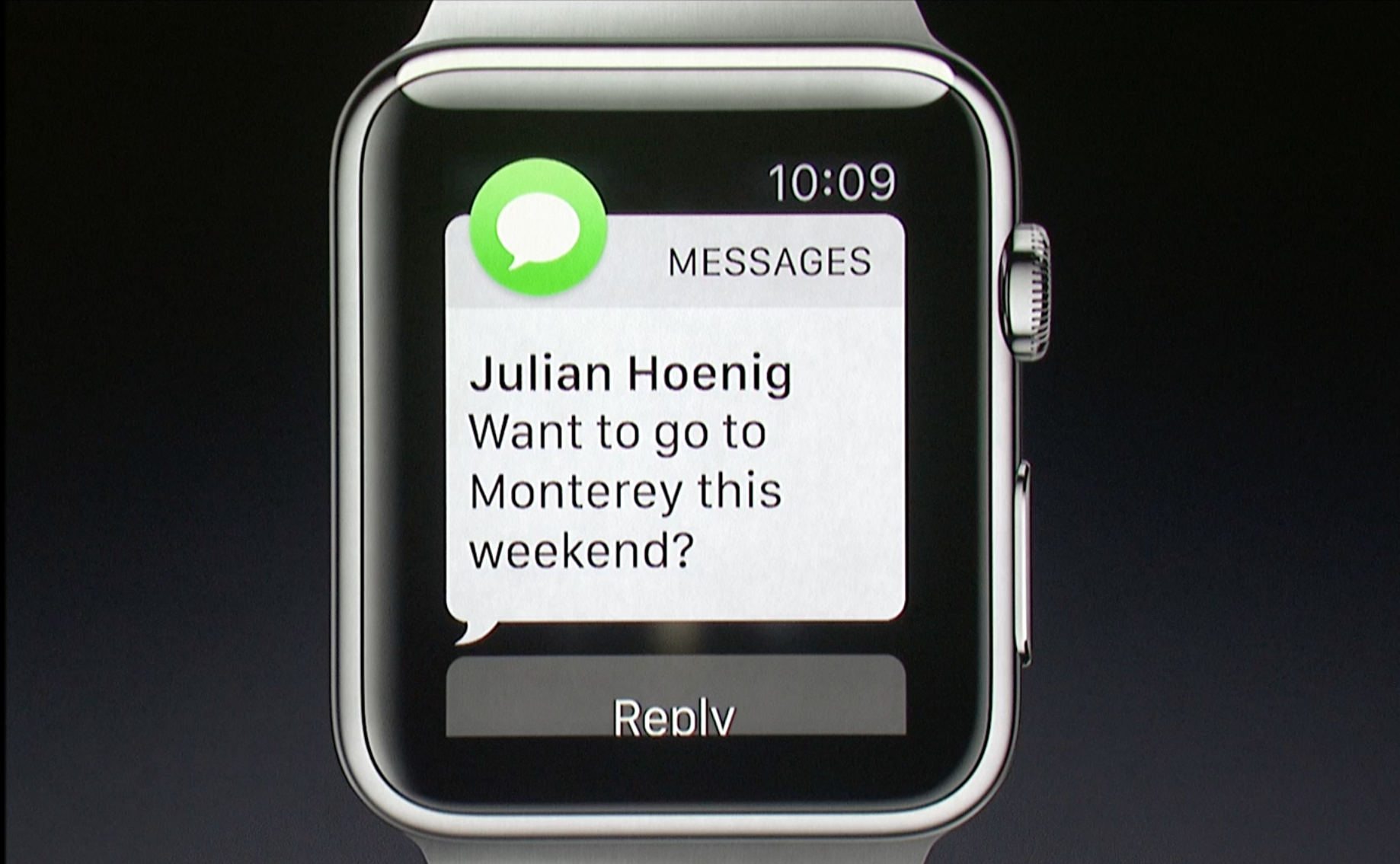 Eines der wichtigsten Dinge, die eine Smartwatch tun muss ist der Umgang mit Benachrichtigungen. Täglich bekommen wir alle SMS, Anrufe, E-Mails, Facebook-Benachrichtigungen und so weiter. Eine gute Smartwatch soll dabei helfen nicht immer das, wahrscheinlich riesige, Handy aus der Hosentasche zu ziehen. Die AppleWatch „tippt“ einem dazu einfach auf das Handgelenk. Ein elektromagnetischer Motor sorgt für den nötigen Impuls. Ob das auf Dauer nervt, können wir derzeit noch nicht sagen. Auf dem Papier scheint Apple aber die bisher beste Lösung für den stetigen Fluss an Benachrichtigungen gefunden zu haben.